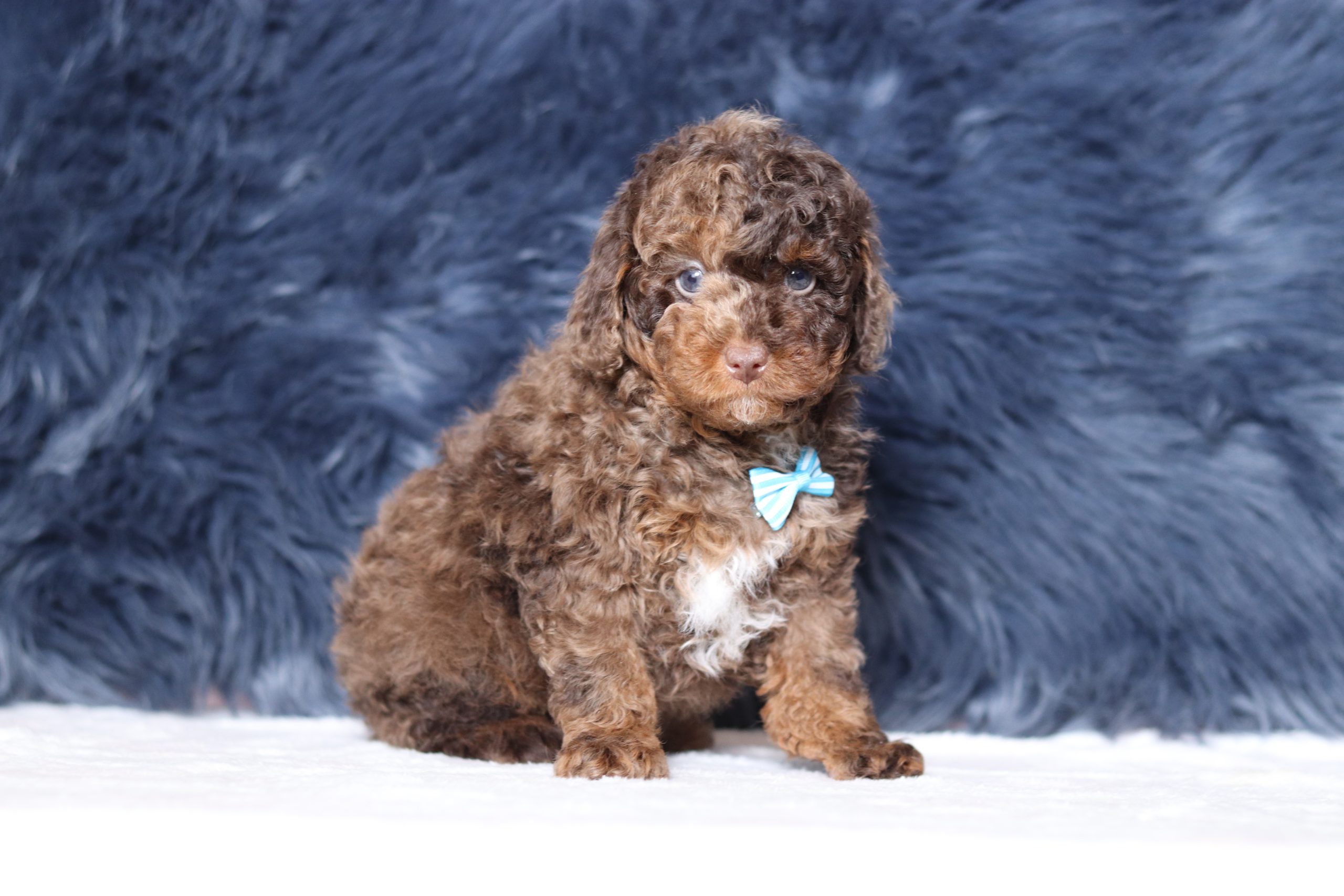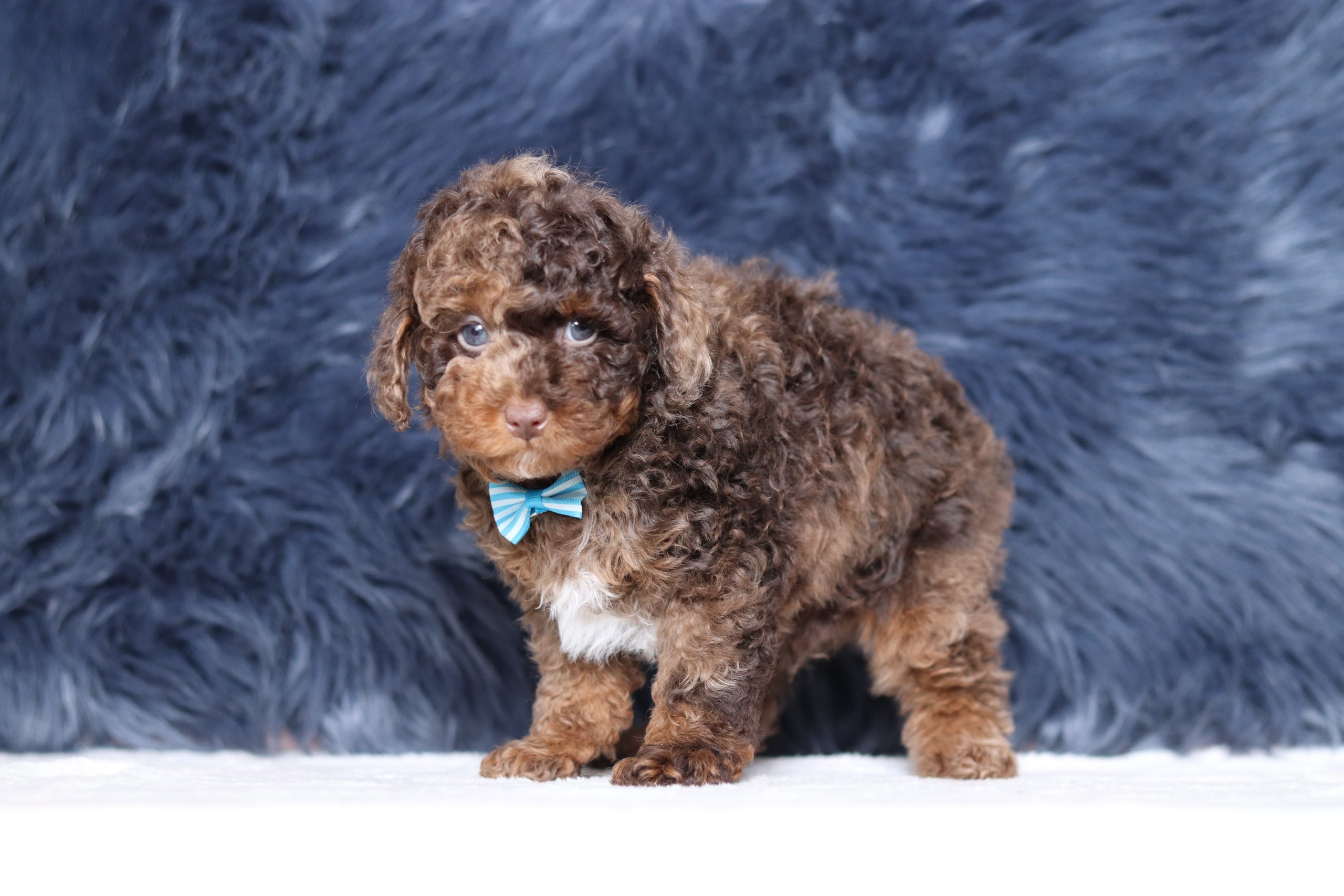 Hello, this is Silas! He’s a gorgeous, little mini poodle boy, with a chocolate merle, soft, furry coat and 2 shining eyes. He loves to play with his siblings and also loves to be held and cuddled! He will be sure to shower you with lots of kisses!