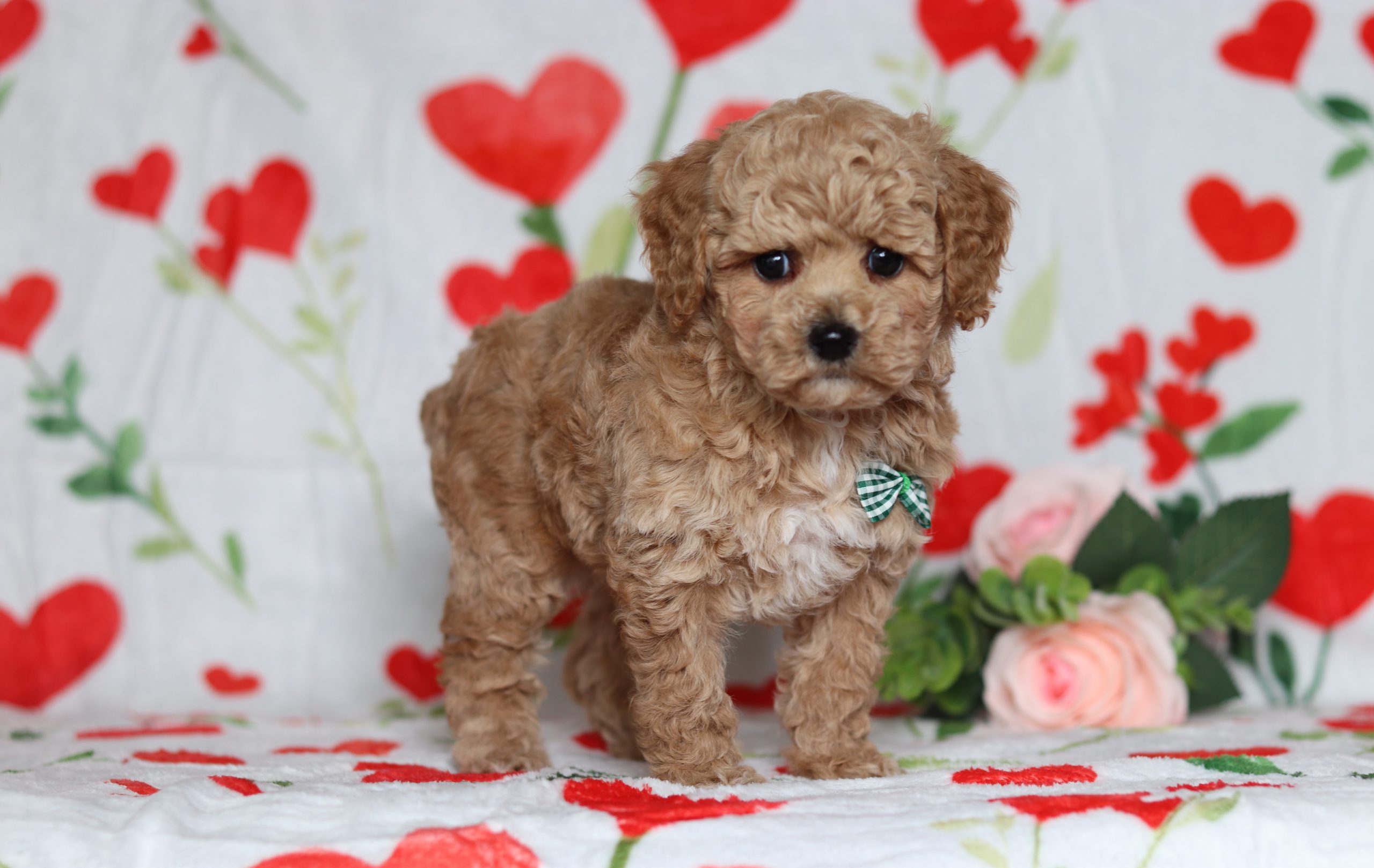 Simon, the mini poodle, boy is very alert and won’t miss a beat! He is a happy go lucky little guy and loves excitement! He has a beautiful, fluffy hair coat! His caring eyes and cute little nose will be sure to steal your heart! Enjoys playtime and also loves to be held! He’s an all around cutie!