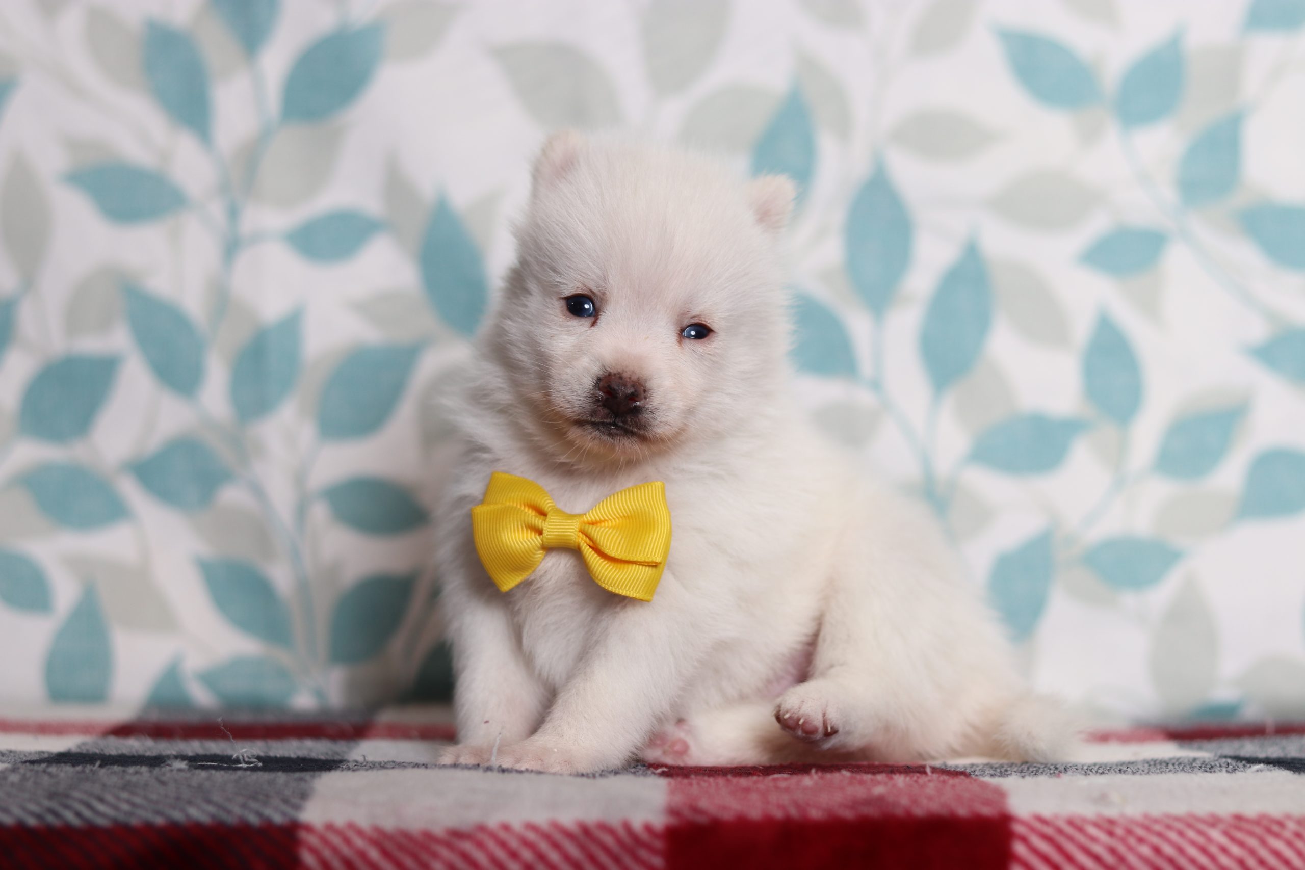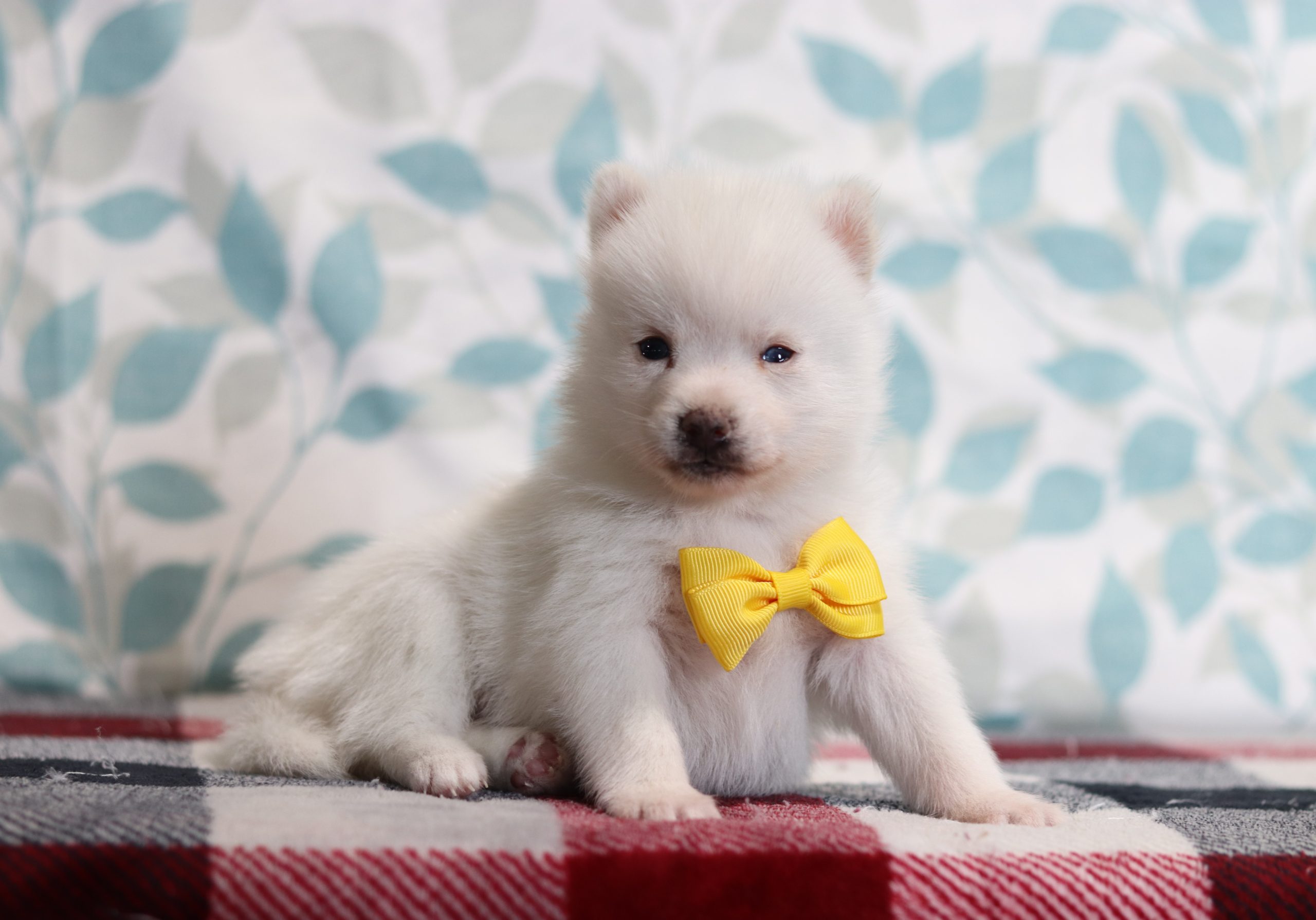 Hello, this is Speedy! He’s a cute little pomsky boy with a pretty, white, soft, furry coat and 2 shining eyes. He loves to play with his siblings and also loves to be held and cuddled! He will be sure to shower you with lots of kisses!