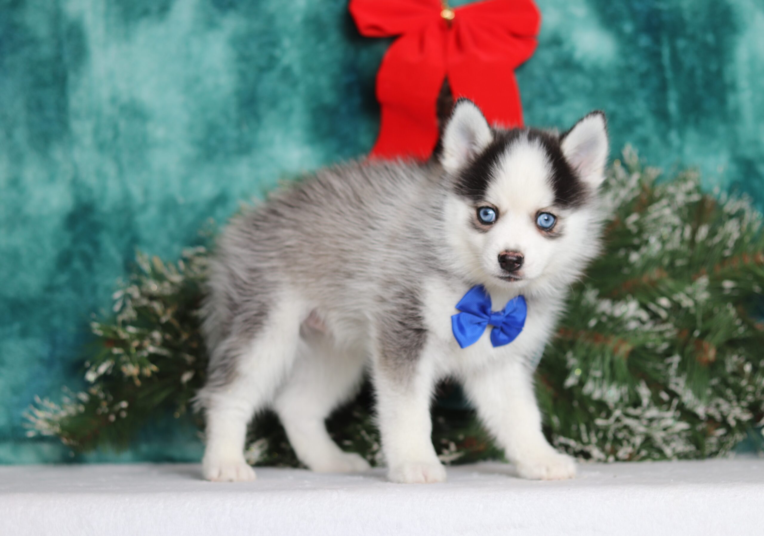 Victor the Pomsky enjoys getting all the attention he can and loves to play with his toys. He did great with his (ENS) Early Neurological Stimulation, he is definitly a joy to have around. He is happy to please just a super friendly little guy!