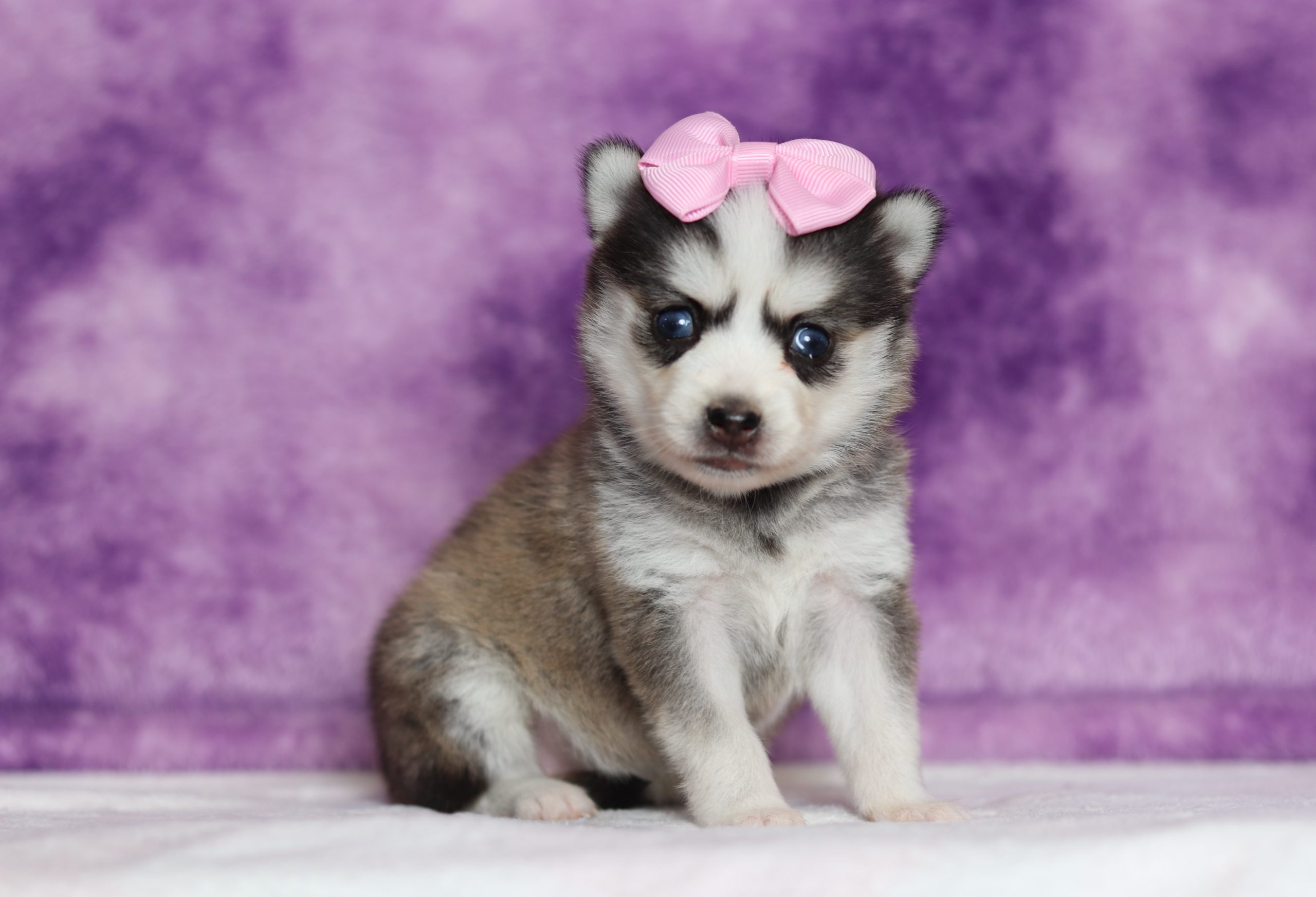Zoey, the Pomsky girl is very alert and won’t miss a beat! She is a happy go lucky little girl and loves excitement! She has a beautiful fluffy,sable, black/white hair coat! Her caring eyes and cute little nose will be sure to steal your heart! Enjoys playtime and also loves to be held! She’s an all around cutie!